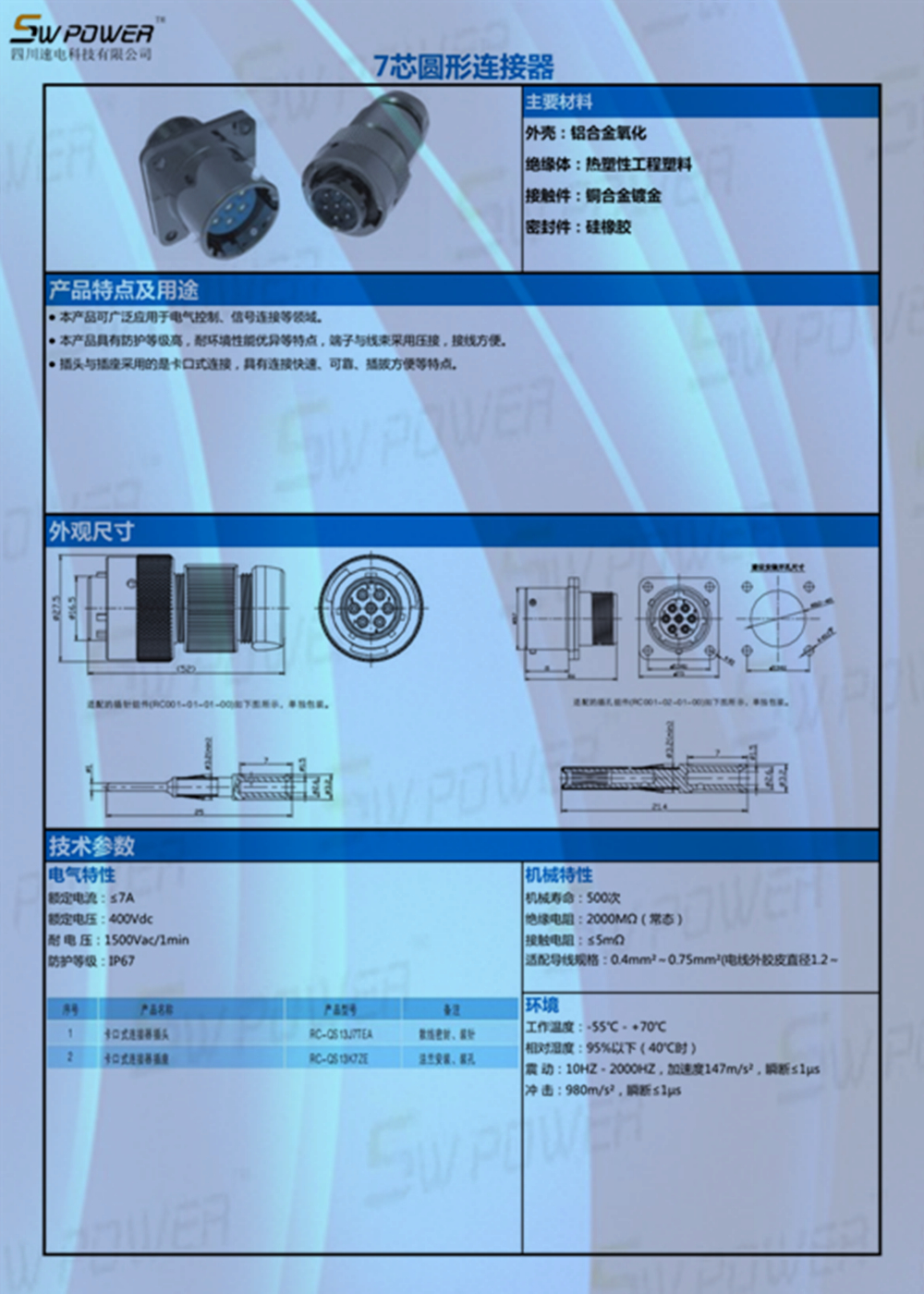 本产品具有防护等级高,耐环境性能优异等特点,端子与线束采用压接,接线方便。